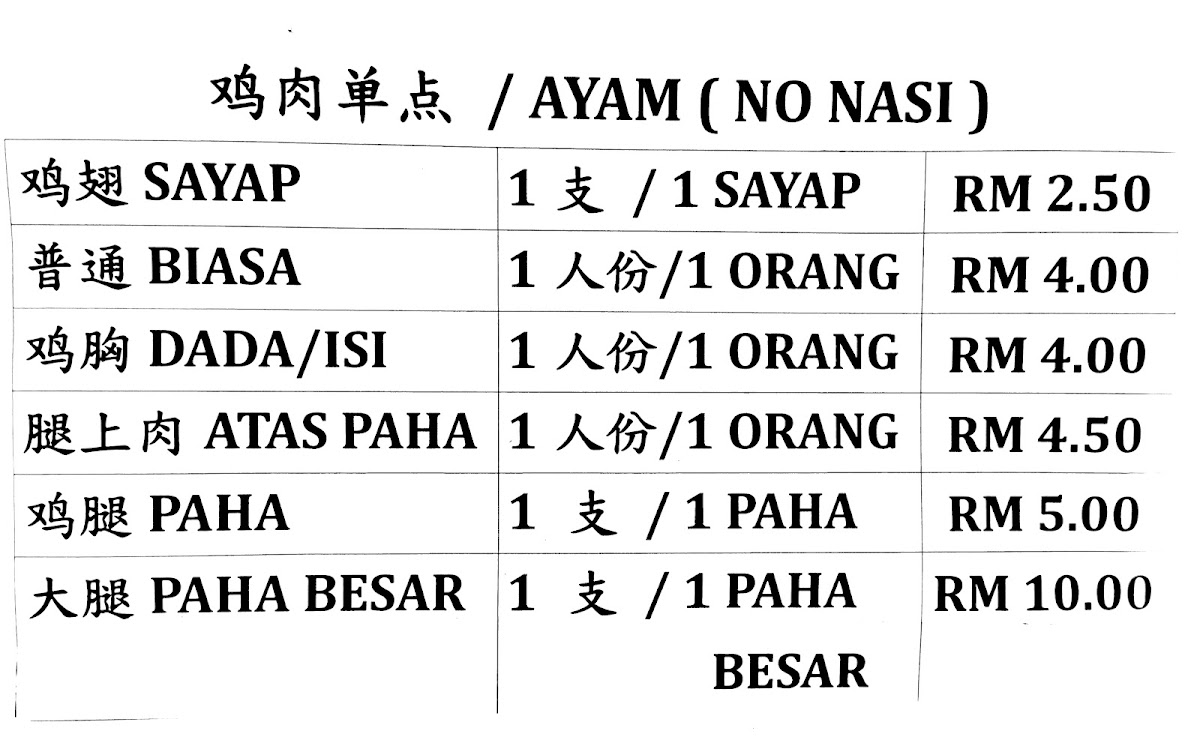 If you’re looking for something light and quick, the Packet Drinks like Soya Kotak and Chrysanthemum Tea are also available. For a bit more variety, the A La Carte section offers 1 Ekor (whole chicken) and 1/2 Ekor (half chicken), with the option to add Rice or Hati (chicken heart).